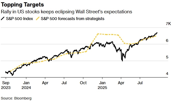 В результате стратеги Goldman Sachs Group Inc., Deutsche Bank AG и другие компании изо всех сил пытаются адаптироваться к текущей ситуации, при этом многие из них неоднократно пересматривали свои прогнозы с тех пор, как индекс S&P 500 продемонстрировал удивительно сильное восстановление после падения, вызванного введением Трампом пошлин в начале этого года.