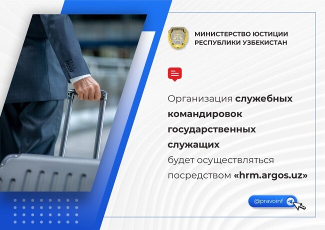 Согласно документу, организация, ведение учета и мониторинг зарубежных и внутренних командировок государственных служащих будут осуществляться через единый модуль "Xizmat safari", который интегрирован в электронную систему "hrm.argos.uz". Требование вступит в силу с 1 октября 2025 года.