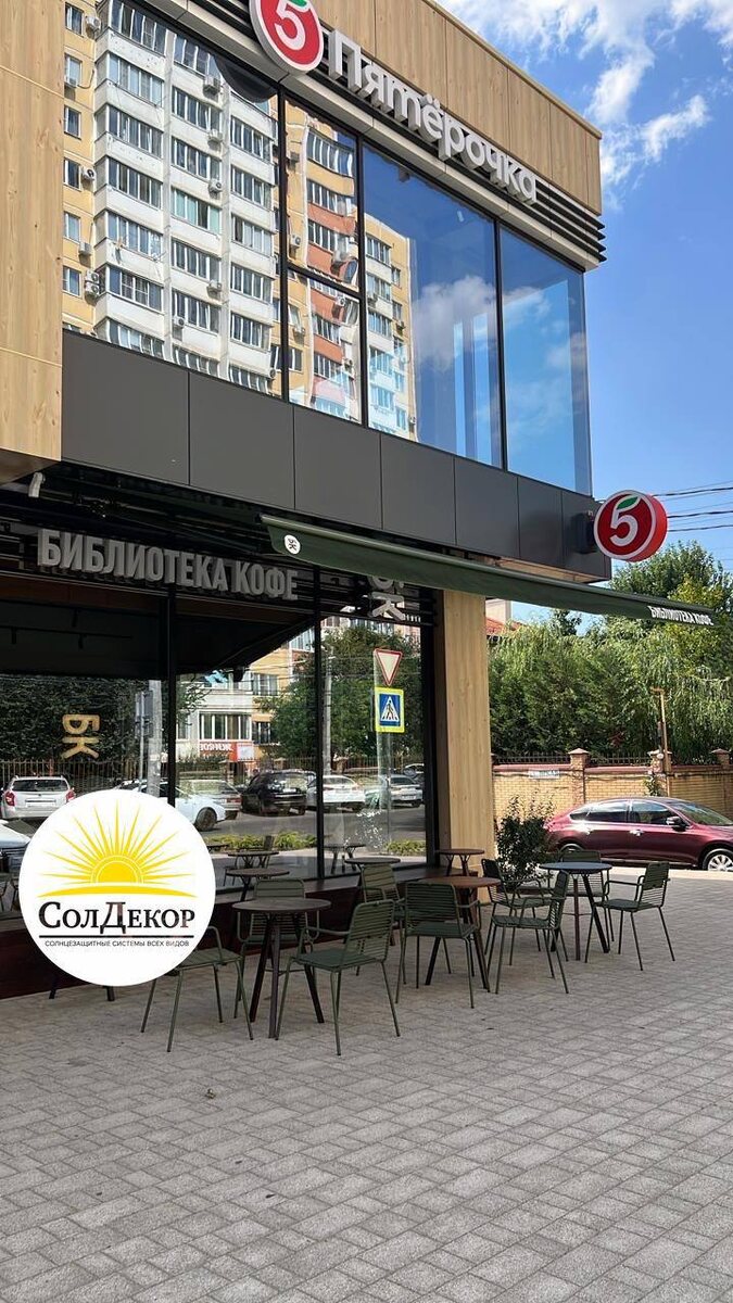 Маркиза выдвижная открытого типа. Длина 5,30м. Выдвижение 2,50м. Каркас окрашен в цвет ткани. Управление автоматическое! Адрес монтажа: город Краснодар, ул. Яркая 40. «Библиотека кофе» @bibliotekacoffee Изготовили и установили 15.07.2025г. #маркизыкраснодар #маркизы #маркизыдлякафе #маркизыкраснодарскийкрай #маркизынавесы #маркизыдляресторана #солдекоркраснодар #маркизадлятеррасы #маркизадлякофейни #маркизыдлякафе #библиотекакофе #кофейнякраснодар #кофейникраснодара #