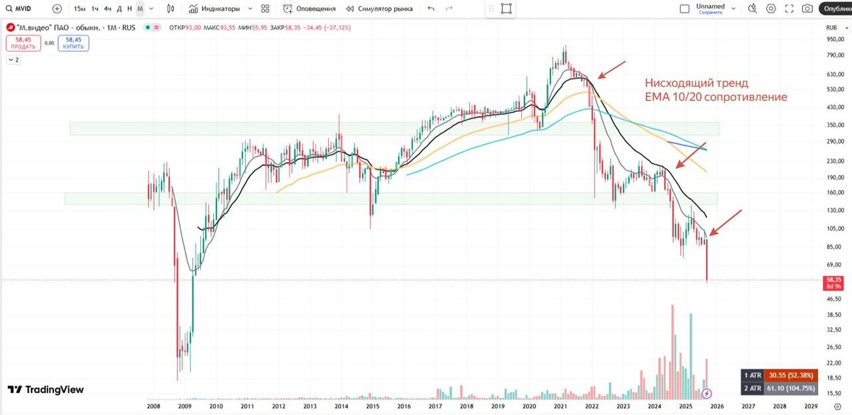 💩 М.Видео. Допэмиссия и снова падение На подобном негативном рынке, новости о допэмиссии одного из аутсайдеров рынка - не звоночек, а целый колокол для шортистов. Акционерам, голосование которых назначено на 13 октября, предлагается утвердить увеличение уставного капитала на 15 млрд рублей. 🤔 Это будет достигнуто за счет выпуска 1,5 миллиарда новых обыкновенных акций номиналом 10 рублей. В случае одобрения, уставный капитал компании вырастет в 9,3 раза. Ранее компания решила сметить формат с закрытой подписки на открытую. Это предполагает участие всех желающих, а действующие акционеры сохранят право приобрести акции нового выпуска пропорционально своей доле, что защитит их от размытия капитала. ❗️ Но на это можно посмотреть и с другой стороны: если у компании в будущем большие перспективы, зачем делится новыми акциями с кем, а не раскупить это среди своих? Вряд ли это жест доброй воли. Но в случае с ВТБ, мы увидели что интерес и деньги для покупок у физиков присутствуют. А формат