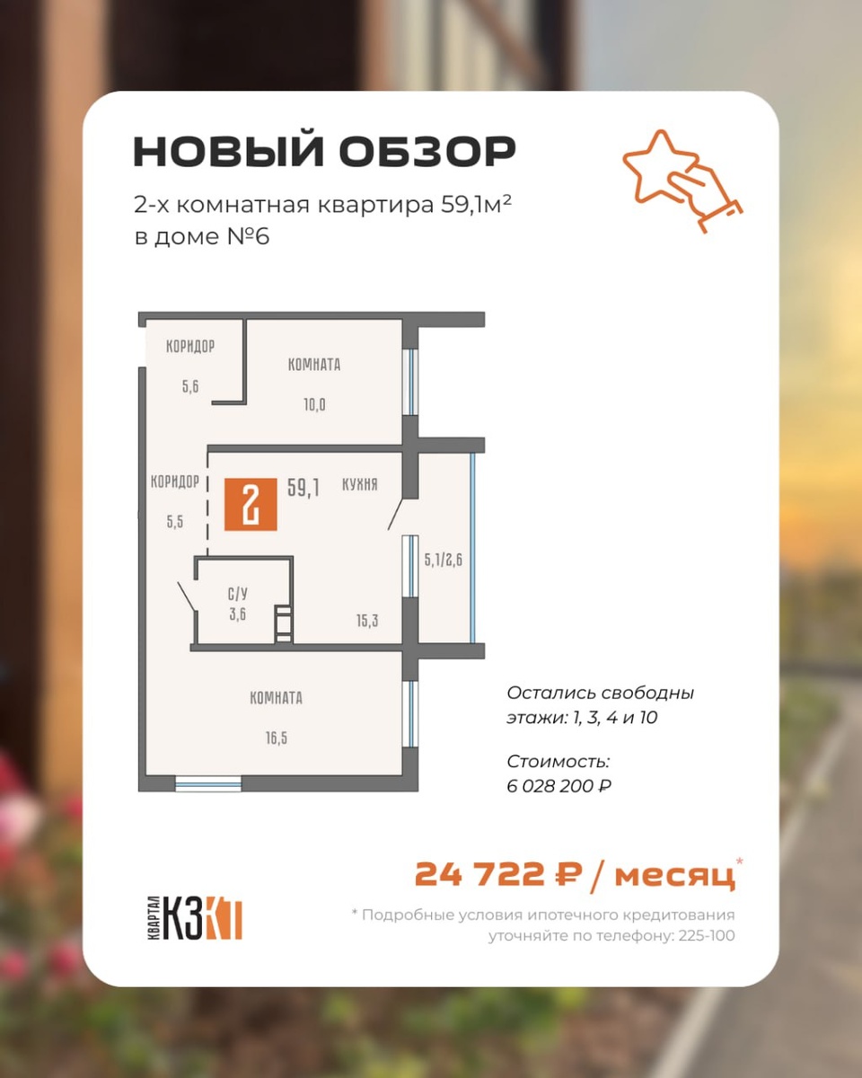 ⚡️ Обзор популярной планировки из отзыва — двухкомнатная 59,1м² в Квартале КЗКТ Квартира в доме №6 со сдачей в конце сентября! 💡 Особенность планировки в том, что жилые комнаты разделены кухней, а значит можно удобно организовать детскую и спальню для взрослых. В дальней комнате два окна, благодаря которым пространство можно зонировать перегородкой — идеальный вариант, если у вас два ребенка! Преимущества планировки: ✅ удобная кухня-гостиная; ✅ прихожая с местом для гардеробной; ✅ широкая панорамная лоджия; ✅ хорошо проветривается; ✅ красивые виды на закат и игровую площадку. Успейте подать заявку на ипотеку по ставке 4,6% на весь срок, пока дом не сдан. Осталась ровно неделя❗️ Звоните сейчас: 225-100 ☎️ В этом посте есть большое видео, которое не загрузилось в Дзен. Откройте оригинал поста в телеграме, чтобы его посмотреть