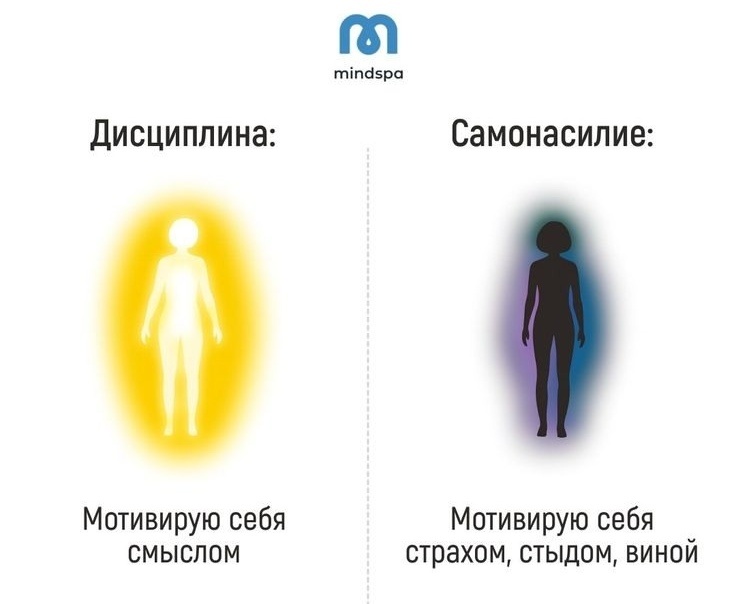 Помимо того, что я являюсь спортивным психологом, у меня есть более широкое направление работы – клиническая психология. Поэтому в этом посте я бы хотела рассмотреть различия между дисциплиной и самонасилием – 2 понятия, которые часто воспринимаются как синонимы. Что такое дисциплина? Дисциплина — это осознанное соблюдение определенных правил и норм поведения, направленных на достижение поставленных целей. Она помогает развивать полезные привычки, улучшает качество жизни и способствует личностному росту. Дисциплинированный человек способен эффективно управлять своим временем, эмоциями и ресурсами, что позволяет достигать успеха в различных сферах жизни. Примеры дисциплинированного поведения: Что такое самонасилие? Самонасилие, напротив, представляет собой навязывание чрезмерных ограничений и требований, которые приводят к физическому и эмоциональному истощению. Оно характеризуется постоянным чувством вины и неудовлетворенности собой, даже при достижении высоких результатов. Человек, по