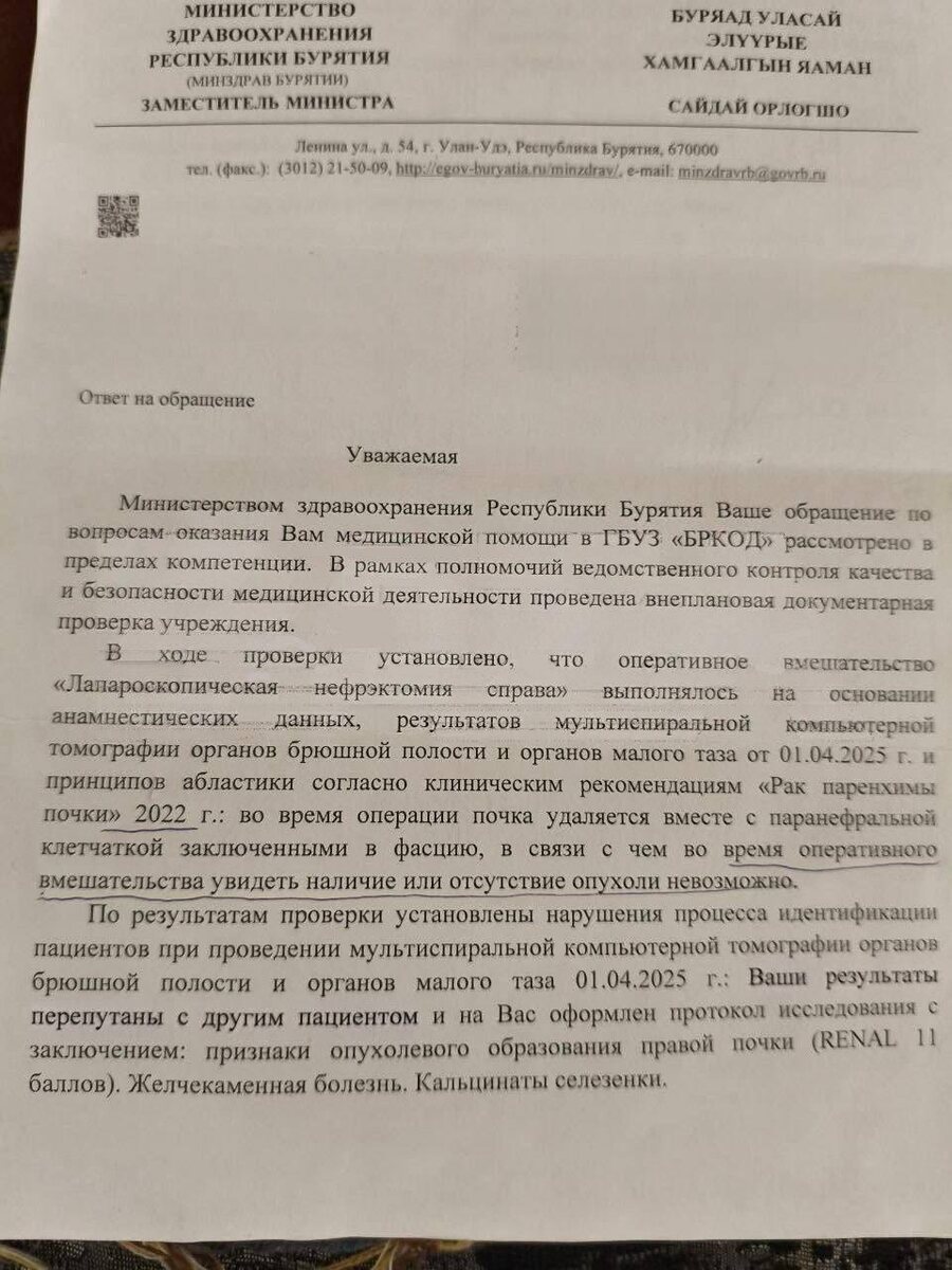 Минздрав Бурятии уже принёс извинения… за «негативные переживания». Как будто речь идёт не про потерю органа, а про неудобный сервис в поликлинике.