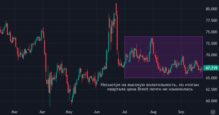 Стратег Bloomberg Джейк Ллойд-Смит видит для этого как минимум три фактора. Цена нефти Brent интервалами 1 день По итогам третьего квартала цена нефти Brent почти не изменилась, но ближе к концу года котировки черного золота могут оказаться под давлением. Об этом предупреждает стратег Bloomberg Джейк Ллойд-Смит. Эксперт видит как минимум три фактора для некоторого снижения цен на нефть в ближайшие месяцы. Во-первых, растет добыча как внутри ОПЕК+, так и за пределами альянса. Во-вторых, долго бездействовавший трубопровод, идущий из Ирака на средиземноморское побережье Турции, может вскоре возобновить работу. При таком сценарии мировое предложение нефти вырастет почти на четверть миллиона баррелей в день, и это на фоне и без того ожидаемого глобального избытка поставок. И, в-третьих, геополитическая обстановка пока не располагает к росту цен на нефть. Ужесточение санкций в отношении российской нефти потребует содействия со стороны США, которым придется принимать меры против Китая. Это вы