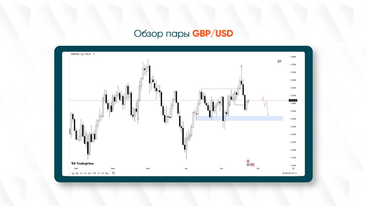Пара GBP/USD традиционно относится к числу наиболее ликвидных и активно торгуемых инструментов на рынке Forex. Её движение часто отражает не только экономическую динамику Великобритании и США, но и общее настроение глобальных инвесторов. Последние недели фунт оказался под заметным давлением: усиление доллара на фоне ожиданий по процентным ставкам ФРС и неопределённость в британской экономике создают неблагоприятный фон для британской валюты. Техническая картина подтверждает этот настрой: продавцы уверенно удерживают инициативу, а попытки восстановления выглядят скорее как коррекции внутри нисходящего тренда. Дневной график показывает три подряд крупные медвежьи свечи. Это важный сигнал: такой ценовой рисунок говорит о том, что продавцы уверенно доминируют, а настроения участников рынка смещаются в сторону дальнейшего снижения. Текущий рост пары в районе 1.3500–1.3550 выглядит как локальная передышка перед возможным новым импульсом вниз. Если давление сохранится, следующей целью может с