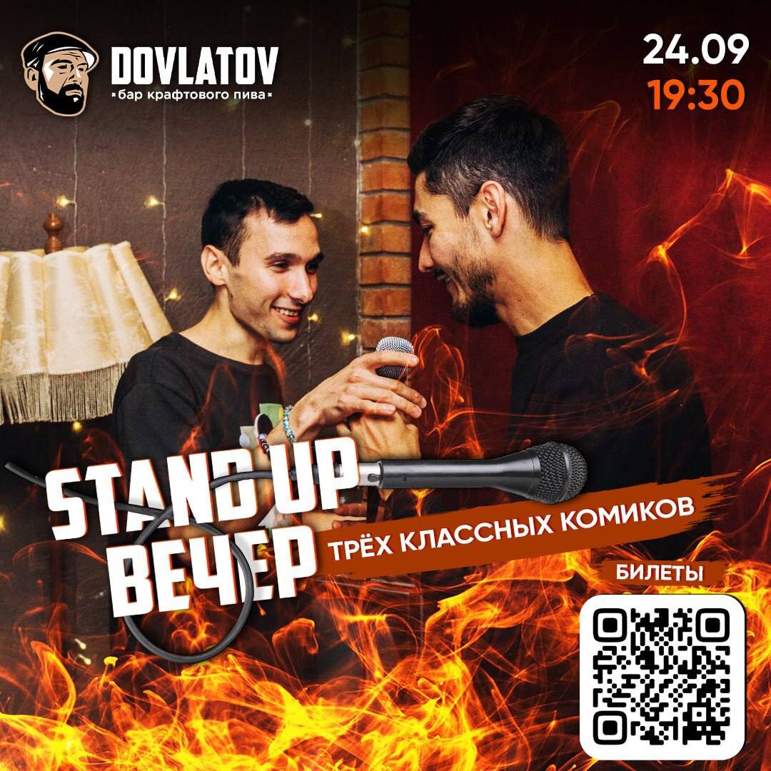 Стендап вечер трёх комиков 🗓️ 24 сентября, сбор гостей в 19:00 📍бар Довлатов Запускаем новый вечер с возможностью окунуться в атмосферу настоящего стендапа и отлично провести время. 3 комика, 1 микрофон, проверенное место и ничего лишнего! Билеты 🎟️ Или по телефону: +79084890770 #24сентября25