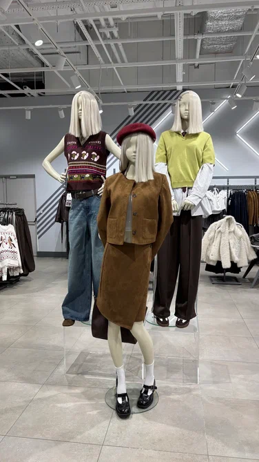 Признаемся честно, каждый раз в ТЦ именно BeFree у нас под самым большим сомнением: вроде бы, есть тренды, с другой стороны — качество оставляет желать лучшего... много одежды для подростков, хотя джинсы можно найти неплохие.... Не удержались — пошли снимать обзор! Хотя у нас был конкретный повод, о нём расскажем в конце. Итак, ассортиментная группа на входе встречает нас трендами — тут и замша (непонятного происхождения), и намёк на препппи, и многослойность. Подобных решений мы за время похода по магазинам насмотрелись немало, поэтому, прямо скажем, не впечатлились. А вот жилетки с весёлыми принтами позабавили — чтобы не сойти за городскую сумасшедшую, часто такое не наденешь, но какой-нибудь смешной образ составить можно. Корова, корова, корова! Такое мы уже много где видели. Лонгсливы с подобными принтами, кстати, тоже встречаются не один сезон — но они невероятно хорошо вписываются в разные образы, поэтому простим магазину такие повторения. Привлекла юбка, а точнее, её цвет — его