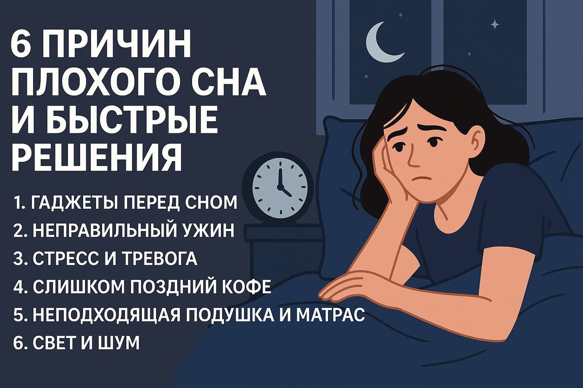 💡 Решение: последний кофе — до 15:00. 5️⃣ Неподходящая подушка и матрас