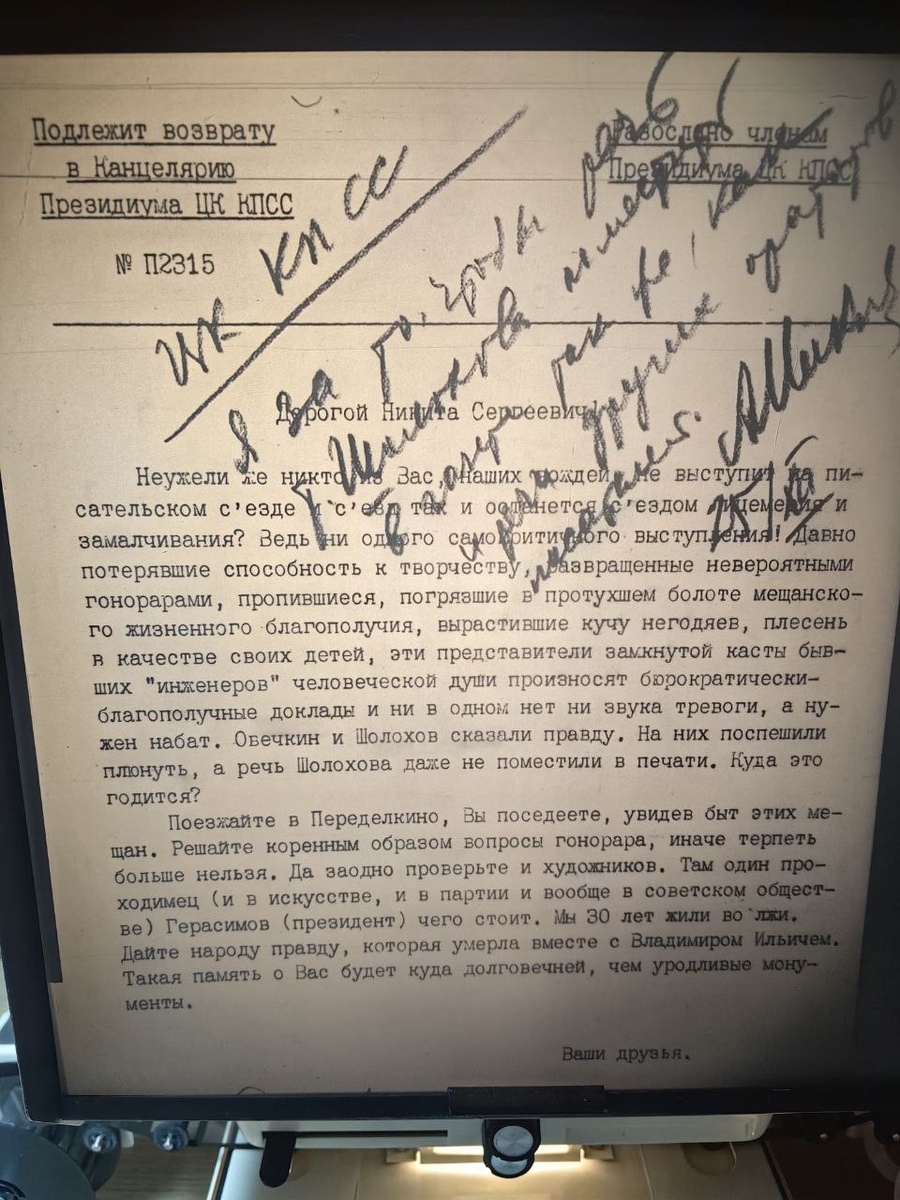 До сих пор многие писатели в шоке от того, как в феврале этого года выбиралось новое руководство Союза писателей России. Писательскому сообществу навязали ни строчки не написавших директора Ленинской библиотеки Дуду, ненавидящего русскую церковь Коновалова, скандального театрального режиссера Богомолова и много кого ещё. А как выборы руководящих органов в писательских структурах проходили раньше? В советское время тоже многое решали не художники, а партийные и прочие органы. Смотрите, как подбирались люди в правление Союза писателей СССР в начале хрущёвской оттепели. 23 декабря 1954 года четыре литгенерала А. Фадеев, А.Сурков, К.Симонов и Б.Полевой подали в Кремль записку и предложили в новый состав правления своего Союза не включить из старого состава Б.Пастернака, В.Кирпотина и Л.Субоцкого. А почему? Они, по мнению начальства, «не принимали активного участия в работе (прежнего состава) Правления». Как будто все другие только день и ночь на протяжении десяти лет функционировали. Отвё