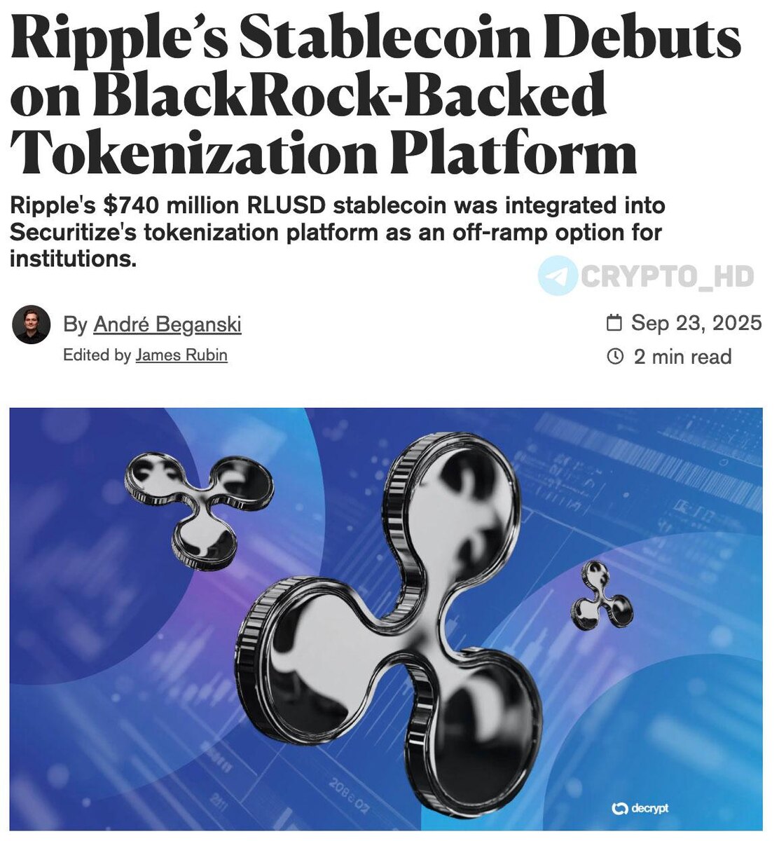 🔥 #XRP Стейблкоин RLUSD от Ripple интегрирован в платформу Securitize – decrypt