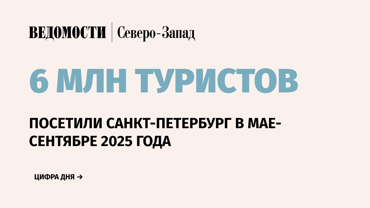 Туристический поток в Санкт-Петербург летом 2025 г. вырос на 6,8% по сравнению с аналогичным периодом 2024 г. С мая по сентябрь текущего года город посетили 6 млн туристов, сообщил журналистам председатель комитета по развитию туризма Петербурга Евгений Панкевич. 💭«Это не такой значительный рост в количественном показателе в сравнении с 2024 г., как произошел по сравнению с 2021-2023 гг., но это все же рост почти на 7%. У нас увеличивается [турпоток] и в зимний период, мы считали отдельно в этом году, он тоже получился больше [по сравнению с аналогичным периодом предыдущего года]. Мы уверены, что в зимний период в этом году у нас также будет увеличение», – сказал он. ➡️ Панкевич отметил, что 6%, или 400 000 человек от всего турпотока за лето, составляют иностранные туристы. В текущем году поездки в Северную столицу пользовались популярностью у гостей из Китая, Индии, Саудовской Аравии, Омана, Белоруссии, Казахстана и Узбекистана. 📰 Подпишитесь на «Ведомости Северо-Запад»