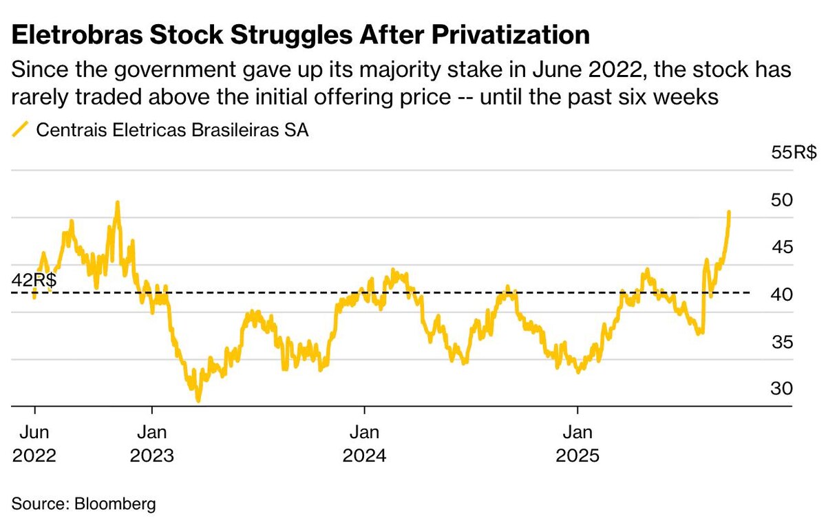 Бразильская Eletrobras наконец-то преодолела кризис после "приватизации", точнее продажи государством части кций компании в 2022 году