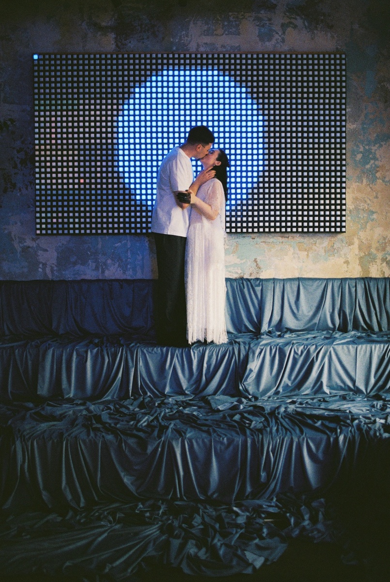 Дресс-код total black, сочный фуд стол в лаймовом оттенке и джин-тоник-понг - яркая летняя свадьба пары из Москвы в Доме Культур