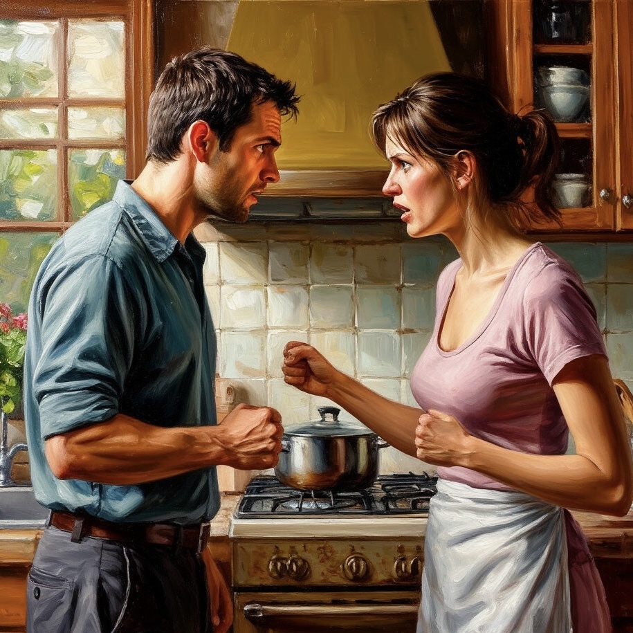 — Вишь! Ещё спорить смеешь! — Денис толкнул жену к столу. — Кто продукты покупает? Я! Кто за квартиру платит? Я!