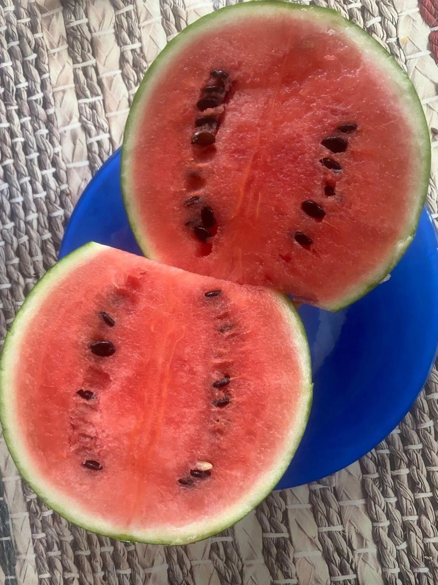 Я уже показывала немного дачу моей сестры. Здесь будет часть фото, , которые делала я, но не этим летом. А сейчас сестра по моей просьбе прислала мне плоды нового урожая. Я ей сказала , что хочу показать плоды вашего с супругом труда в публикации в ДЗЕН. что сейчас и сделаю. Начинаю с арбуза. У них выросли арбузы и красные и желтые. Сестра сказала, что им кажется, что вкуснее их арбузов нет. Да, друзья, не удивляйтесь, Тюмень очень солнечный город. Это моя родина. Здесь я закончила школу и институт, а потом долгий отрезок своей жизни жила в Ставрополе. Так вот представьте, количество солнечных дней в Тюмени и Ставрополе одинаково! Но, конечно, совсем разная зима и соответственно среднегодовая температура. Среднегодовая температура в Тюмени По данным за 2020–2024 годы- 3,7 градуса. По информации за 1970–1974 годы, среднегодовая температура была +1 °C. За 50 лет показатель вырос на 2,7. Климат в Тюмени резко континентальный . переходный от умеренно континентал