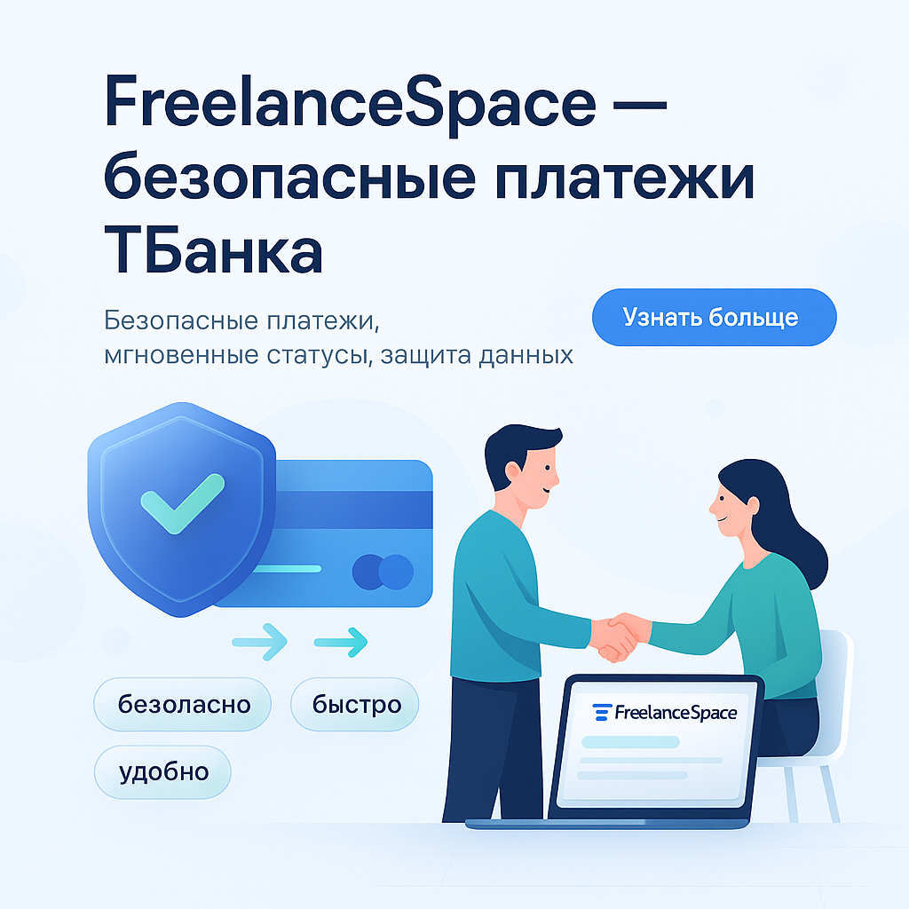 Условия остаются в рамках действующих тарифов FreelanceSpace; актуальные детали — в разделе «Тарифы». Если вы уже работаете на платформе — никаких действий не требуется: новые платежи автоматически пойдут через ТБанк. Только начинаете? Создайте заказ или подключите профиль фрилансера и попробуйте обновлённые безопасные платежи.