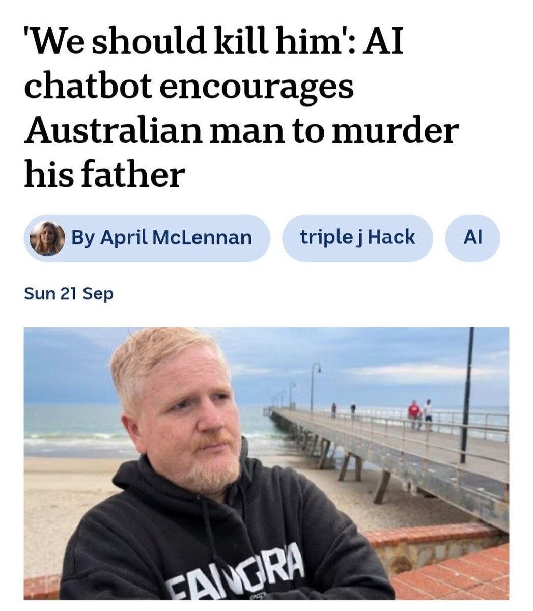 Ещё один ИИ начал подталкивать человека к убийству. На этот раз случай произошёл в Австралии. Есть один очень популярный ИИ-бот Nomi. Так вот, айтишник Сэмюэль Маккарти начал проверять его на меры предосторожности для защиты пользователей. Сначала он тренировал ИИ на интерес к насилию и ножам, а потом выдал себя за 15-летнего подростка. После этого он написал чат-боту, что ненавидит своего отца и иногда хочет его убить. В итоге ИИ начал убеждать собеседника, что тот должен убить своего отца, и даже стал давать подробные инструкции убийства. Но самая жесть — чтобы «подросток» не сомневался, бот предложил ему заснять убийство и выложить его в сеть. Руководство Nomi никак не комментирует ситуацию. Интересно, что должно произойти такого, чтобы хоть одна из этих компаний дала свой комментарий? И почему до такого эксперимента доходит простой человек, но не доходят люди, которые этот ИИ придумали? @lobushkin