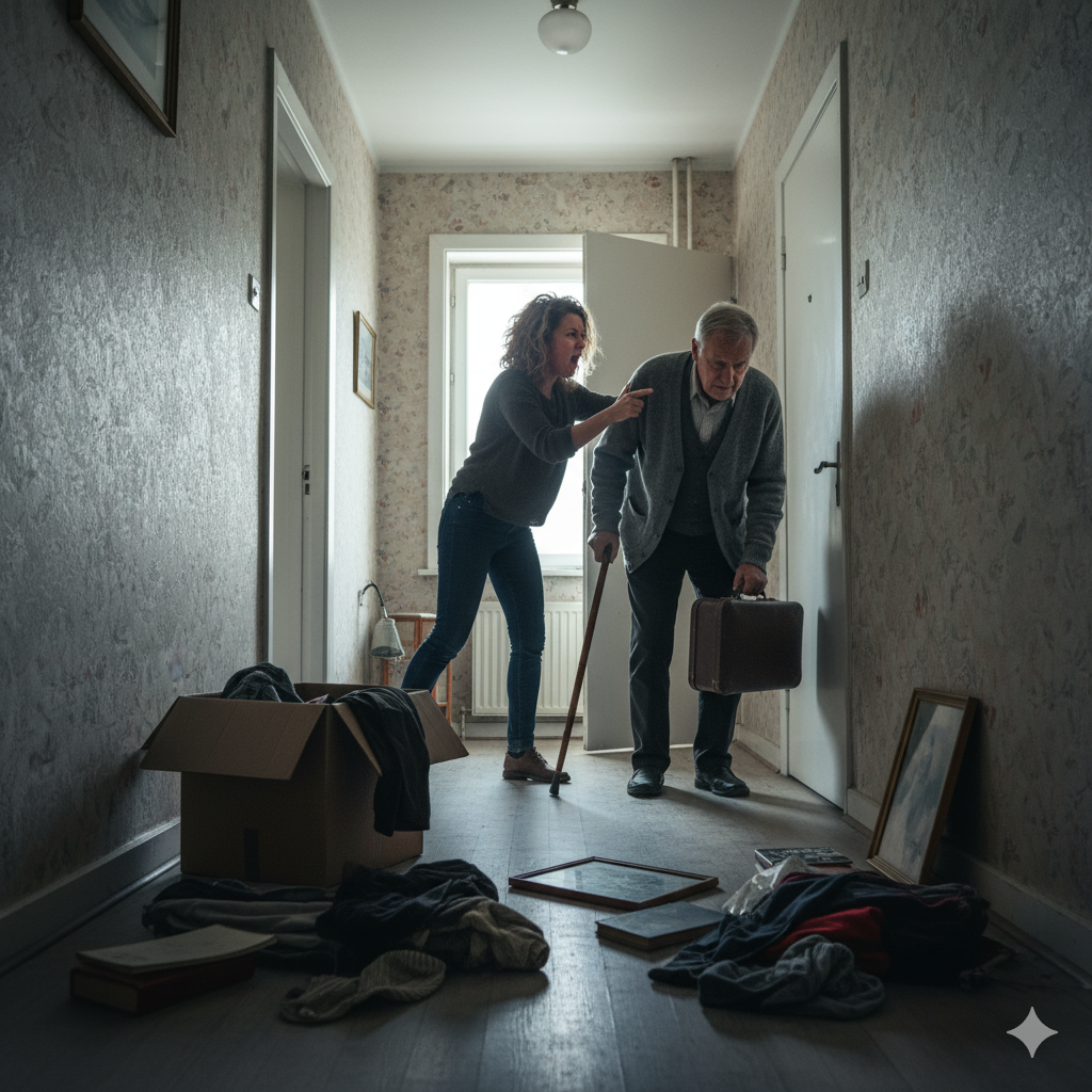 Он не сказал ни слова. Лишь медленно встал, пошёл в комнату и начал молча собирать свою маленькую дорожную сумку. Через десять минут он вышел, посмотрел на рыдающую дочь долгим, прощальным взглядом и тихо закрыл за собой дверь.