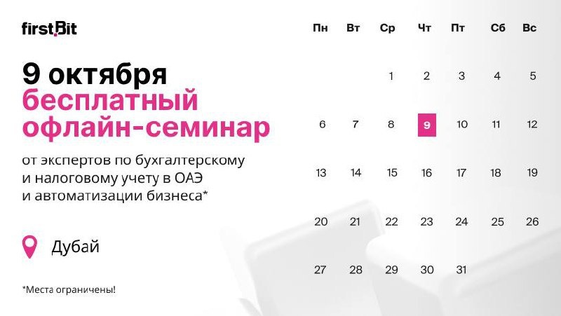 9 октября 2025 года в Дубае пройдет бесплатный семинар для новых участников «Автоматизация бухгалтерского и налогового учета ОАЭ на базе 1С:Предприятие».
