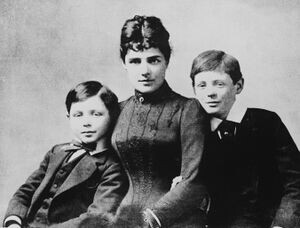 Дженни Черчилль со своими сыновьями Джоном (слева) и Уинстоном (справа) в 1889 году