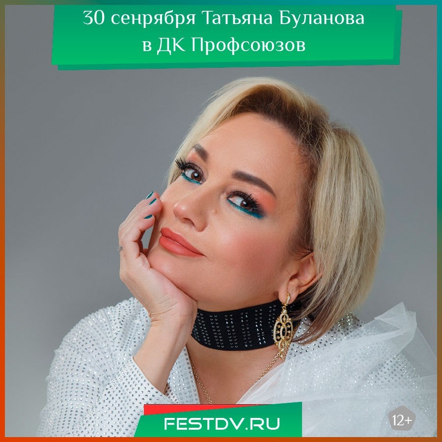 Татьяна Буланова с концертом в ДК Профсоюзов – Любимые хиты и атмосфера настоящей эстрады Дата и время: 30 сентября, 19:00 Место проведения: г. Хабаровск, ул. Льва Толстого 22, Дворец культуры профсоюзов Стоимость: 2000–5000₽ Телефон для справок: +7 (4212) 28-05-07… #фестивалим #хабаровск #вхабаровске #отдыхдв #отдых #фестиваль Подробнее: https://festdv.ru/meropriyatiya/kalendar-sobytij/30-sentyabrya-yubilejnyj-konczert-tatyany-bulanovoj-v-habarovske/
