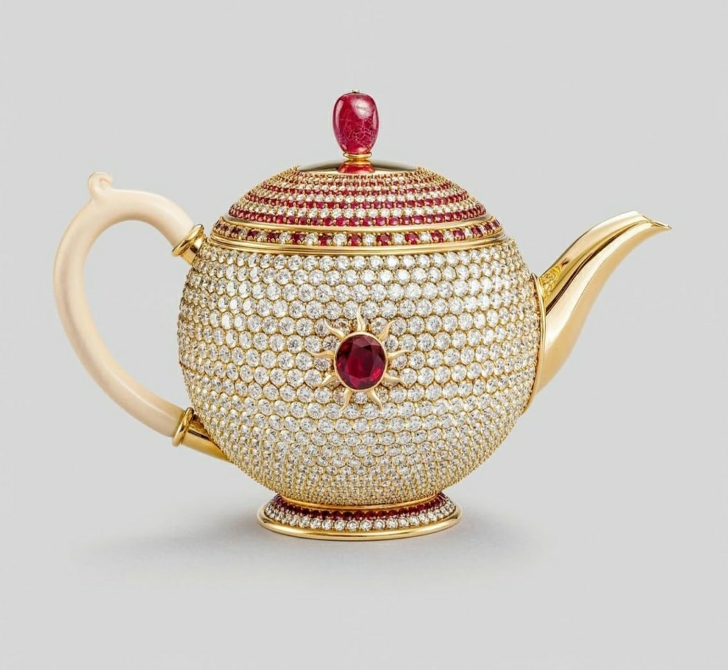Вы когда-нибудь задумывались о том, насколько роскошным может быть чаепитие? Забудьте о фамильном серебре и изысканных фарфоровых сервизах! Nirmal Sethia, ценитель прекрасного и владелец компании Newby Teas, превзошел все ожидания, создав настоящий шедевр чайной церемонии – чайник-эгоист, украшенный драгоценными камнями, с рубином в 6 карат в самом центре! Этот чайник, рассчитанный всего на одну персону, – настоящее произведение искусства, сочетающее в себе ювелирное мастерство и утонченный дизайн. Он создан для тех, кто ценит моменты уединения и готов наслаждаться чаем с поистине королевским размахом. Рекордсмен Guinness World Records: И вот вам факт, который поражает воображение: 6 сентября 2016 года компания Guinness World Records официально признала чайник "Эгоист" самым дорогим чайником в мире! Его оценочная стоимость составляет около 3 000 000 долларов! Рубин из сокровищницы любви: Но самое трогательное в этой истории – это происхождение центрального элемента украшения. Nirmal