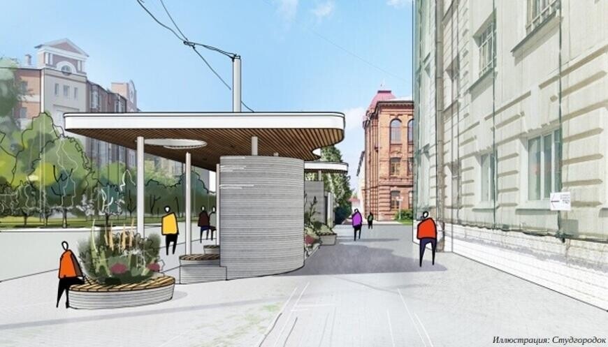 Томский государственный архитектурно-строительный университет реализует первый в России проект по созданию остановки общественного транспорта с применением строительных аддитивных технологий. На этой неделе стартуют работы по демонтажу старой конструкции, параллельно ведется 3D-печать элементов нового павильона. Основание старой установки будет удалено, так как новое основание планируется вывести в один уровень с Соляной площадью для безбарьерного доступа, сообщает пресс-служба ТГАСУ. Затем начнутся строительно-монтажные работы. Вдоль стены со стороны площади будут расположены места для ожидания транспорта, а с обратной стороны — цветник. Кровля — с подшивкой деревянными рейками и акцентными круглыми вырезами для игры света и тени. Предусмотрены водоотведение с кровли в зеленую зону и подсветка павильона в темное время суток. 3D-печать элементов новой конструкции ведется в лаборатории научно-образовательного центра «Аддитивное строительство Сибири» Томского государственного архитектурн