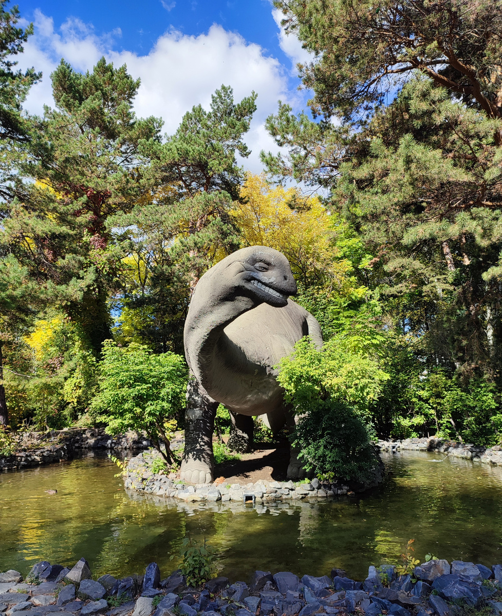Но сначала поздороваемся с милашкой-динозавром! А то если не проявить уважение, то он и не милашкой может стать 🤔 Парочка динозавров при входе для свободного общения, остальные - в Динопарке.