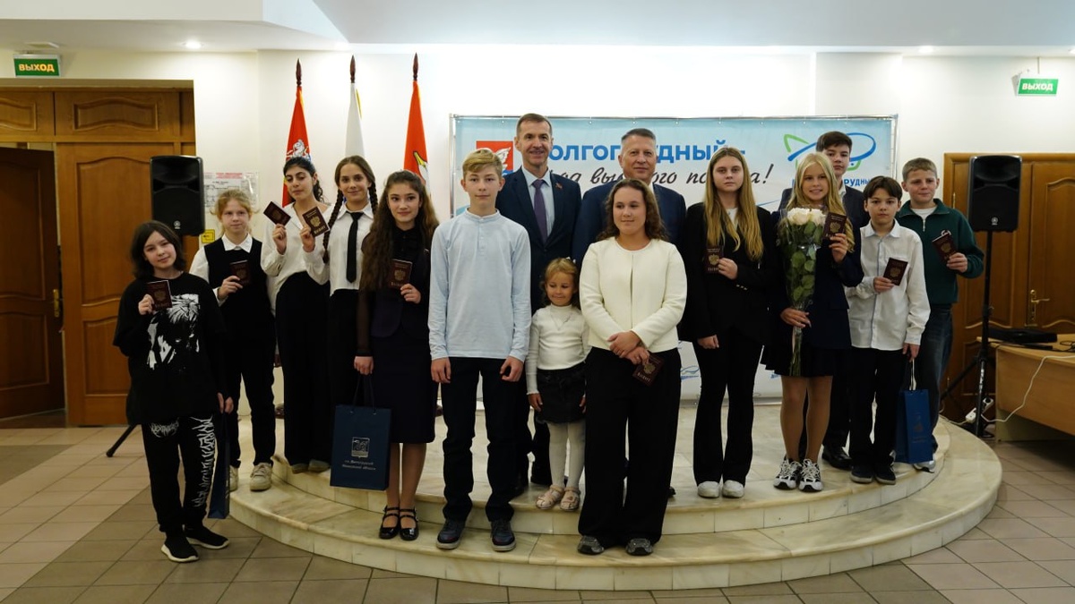 В Долгопрудном прошла торжественная церемония вручения паспортов 📕23 сентября в ДК «Вперёд» 12 юным жителям Долгопрудного торжественно вручили паспорта. С важным этапом в жизни ребят поздравили глава г. о. Долгопрудный Олег Сотник и председатель Совета депутатов округа Дмитрий Балабанов. «Теперь вы полноправные граждане России. Это большая честь, но в то же время – большая ответственность. Вам предстоит продолжить дело предков – трудиться, чтобы сделать нашу Родину ещё лучше, ещё сильнее, – сказал Олег Сотник. – Мы верим в вас! Желаю достичь многого в жизни и стать гордостью родителей, города и России». Подростки вместе с паспортом получили брошюру с текстом Конституции РФ и сувениры с символикой Долгопрудного. Для всех прозвучала песня о Родине. 👀В этом году в Долгопрудном прошло 8 торжественных церемоний, на которых паспорта были вручены 115 ребятам. 📌Напомним, при подаче документов в МФЦ подросток заполняет анкету, в которой указывает свое согласие или отказ от получения до