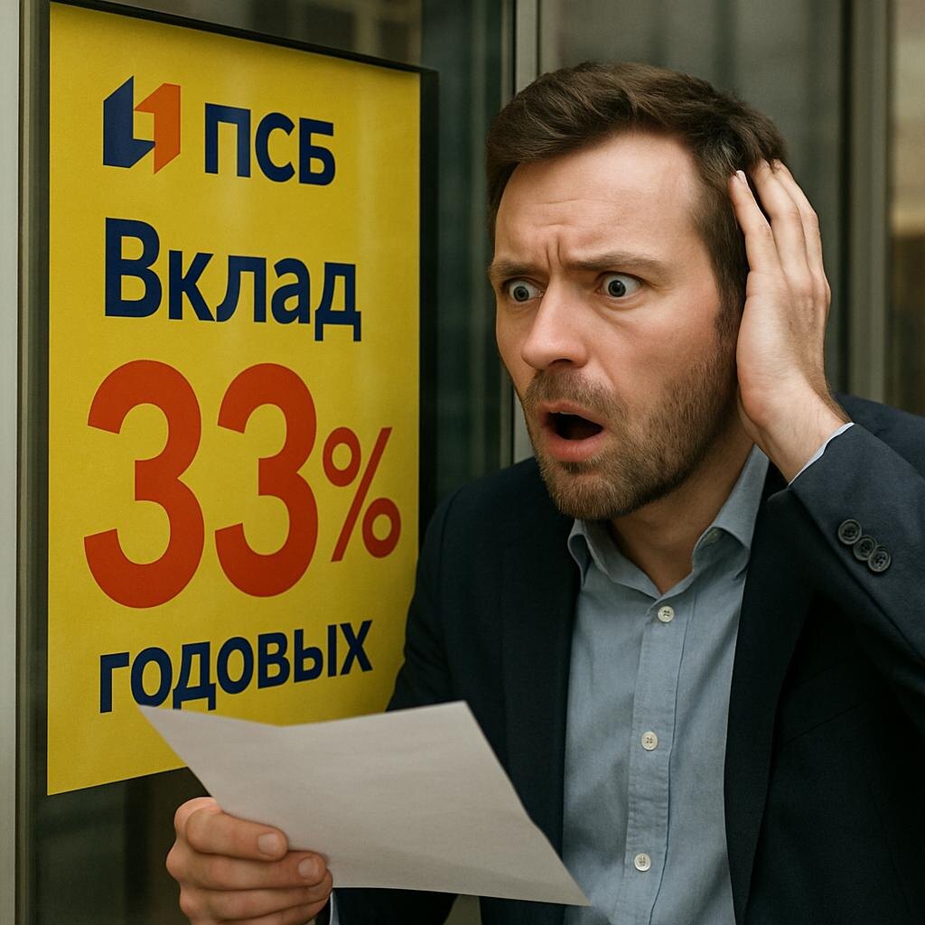 Только посмотри — ПСБ предлагает новым клиентам вклад «Богатырская ставка» с невероятной доходностью 33% годовых. На фоне средних ставок в 13-15% это выглядит как какая-то шутка или ошибка. Но нет, это реальное предложение.