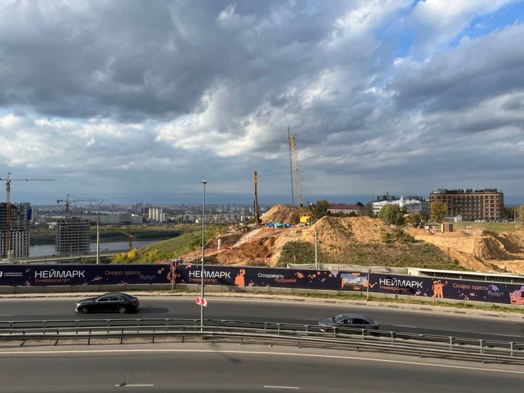 В Нижнем Новгороде продолжается строительство IT-кампуса «Неймарк». Его главный корпус расположится на улице Дальней у метромоста. Новые фотографии со стройплощадки опубликовал Telegram-канал GIPERNN.RU. Судя по снимкам, сейчас на стройплощадке мобилизована спецтехника. Рабочие устраивают свайное основание и занимаются разработкой грунта. Главный учебный корпус IT-кампуса будет пятиэтажным и включит учебно-лекционные аудитории и научные лаборатории. Здесь же разместится ректорат. Ключевой объект «Неймарка» будет состоять из парящих над холмом блоков и сможет вместить до 3062 человек. Достроить здание планируется в 2028 году. В перспективе от главного корпуса протянутся два пешеходных моста. Первый свяжет здание с улицей Ярославской, второй — со студгородком на улице Большие Овраги, где на днях торжественно открыли 18 домиков-общежитий. Как это было, читайте здесь. Строительство продолжается еще на одном участке — возле ННГУ имени Лобачевского. Здесь возводят два гостиничных комплекса и