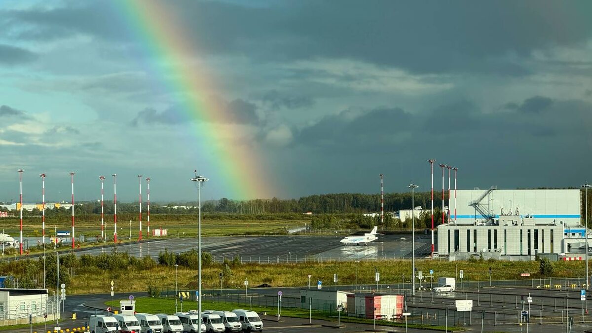 А над Пулково в этот дождливый день была замечена яркая радуга