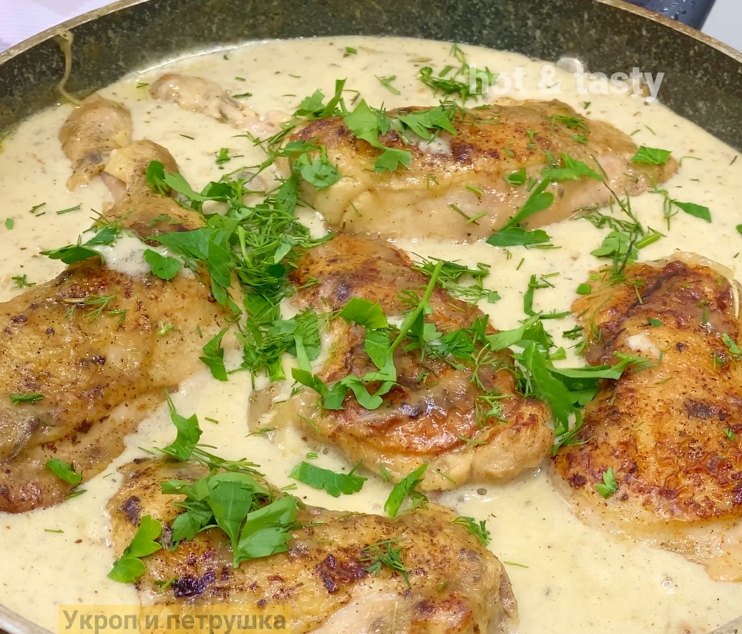Иногда так хочется приготовить что-то не просто вкусное, а по-настоящему изысканное, чтобы удивить родных или устроить себе маленький праздник дома. Именно таким блюдом является курица в сливочно-винном соусе с шампиньонами. Оно готовится достаточно просто, но вкус получается глубоким, насыщенным и гармоничным — словно из хорошего ресторана. Нежное мясо, пропитанное ароматом белого вина и специй, в сочетании с шампиньонами и густым сливочным соусом — это кулинарная магия, которую стоит попробовать хотя бы раз. Начинаем с подготовки курицы. Промойте и обсушите мясо, нарежьте его на удобные порционные куски. Разогрейте смесь растительного и сливочного масла на сковороде и обжарьте курицу с обеих сторон до румяной корочки. Это позволит запечатать соки внутри и сделать мясо более нежным. Переложите курицу на тарелку. В той же сковороде обжарьте лук, нарезанный полукольцами, пока он не станет мягким и прозрачным. Добавьте измельчённый чеснок, перемешайте и готовьте около минуты. Затем выло