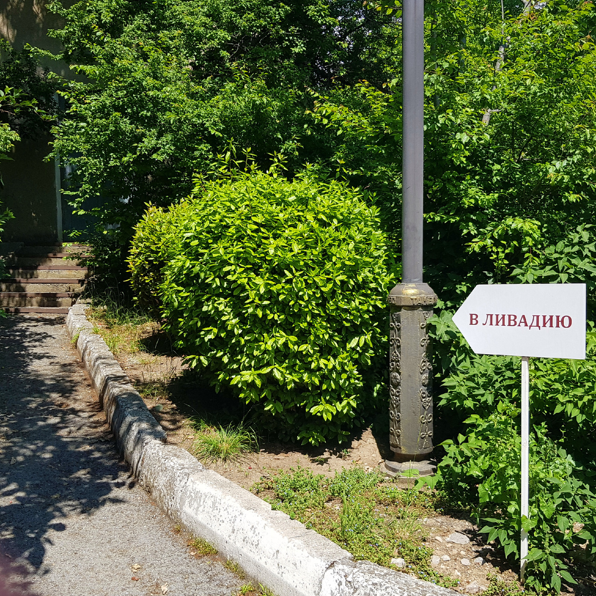 Следуя в Ливадию из Нижней Ореанды пешком, надо непременно помнить, что дорога довольно долго идет в гору - подъемы крутые и пологие, лестничные и обычные, южные дворики и не самые живописные пустыри, тень и солнцепек... Кстати, жара заметно добавляет экстрима. Но мы справились. Вышли, наконец, на пейзажную тропу, ведущую к Ливадийскому дворцу. Решили, что и в сам поселок нам тоже надо (в поисках зарядного шнурочка взамен нашего, вышедшего и строя). Пока шли в поселок, конечно же, зашли к скульптурной композиции, посвященной Ялтинской конференции. Ливадия хранит память о событиях, изменивших ход мировой истории. А мы продолжаем двигаться по поселку и любоваться старинными домиками, которых здесь довольно много, часть их них очень качественно отреставрированы, и радуют глаз изяществом форм, особым колоритом, создавая неповторимую атмосферу погружения в прошлое. Эти домики - часть романовской Ливадии, в которой размещались всевозможные службы - из тех, что обеспечивали функционирование