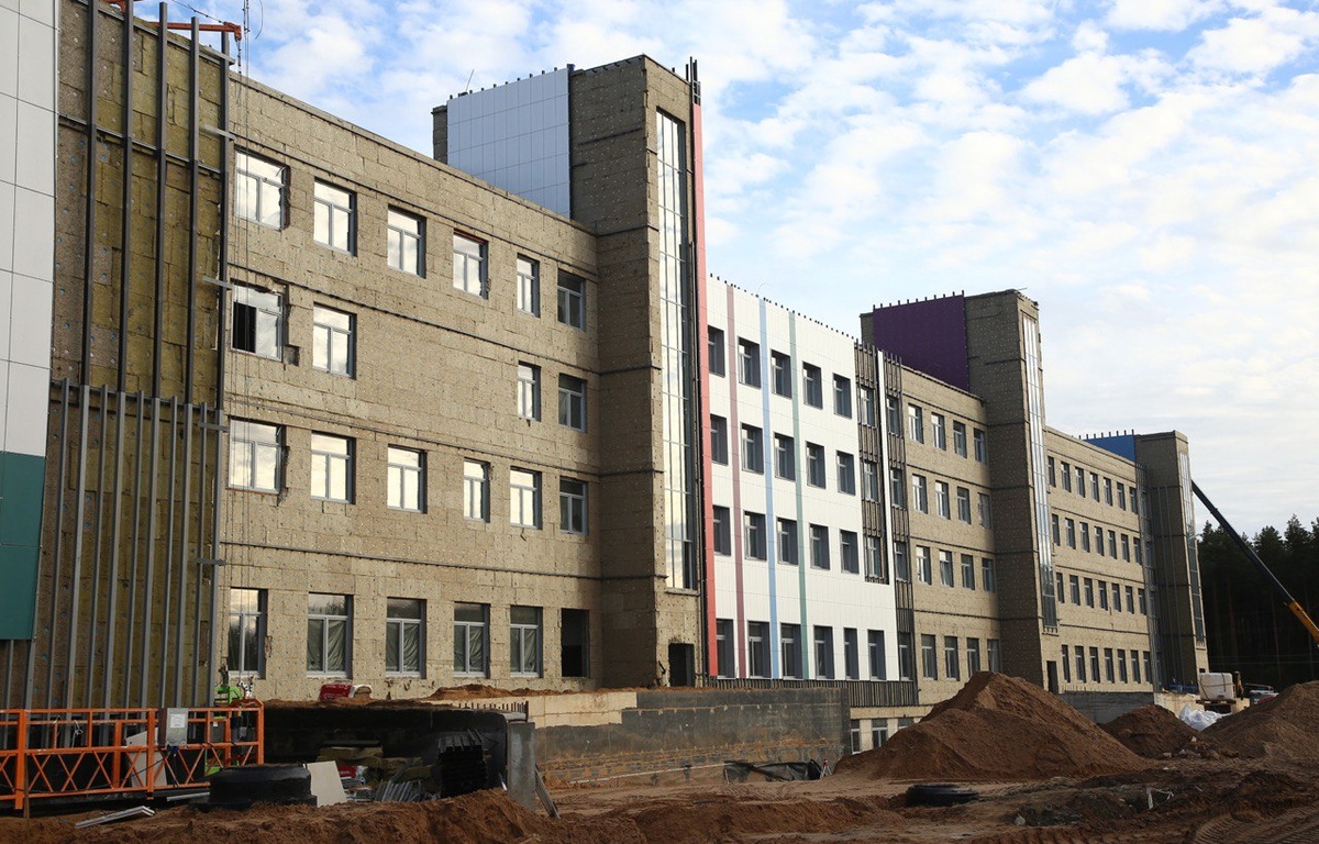 Сейчас на объекте трудится 180 специалистов, задействовано 14 единиц техники. Ведутся работы по устройству кровли и фасада здания, перегородок, стяжки пола, монтажу окон, внутренних инженерных и наружных сетей.