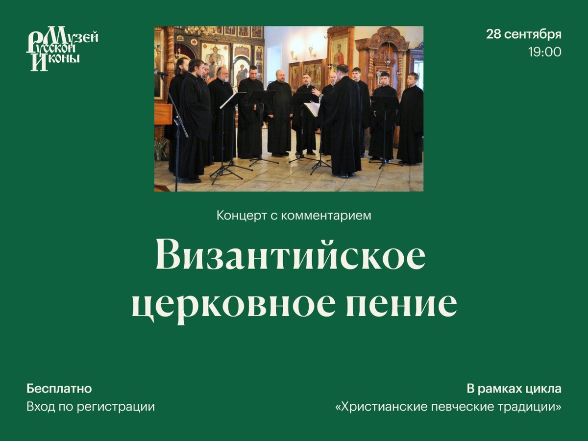 Концерт | 28 сентября, 19:00 В новом сезоне продолжаем цикл «Христианские певческие традиции». Благодаря исследователям и исполнителям в музее можно познакомиться с певческим искусством Древней Руси и Византии, услышать григорианский хорал, раннее русское многоголосье и духовные стихи. Приглашаем на концерт мужского хора школы византийского пения «Схоли́он Псалтики́с». В программе прозвучат классические песнопения византийской традиции в сопровождении комментария об истории и особенностях византийской церковной музыки. 👉 Мероприятие проводится бесплатно, число мест ограничено. Записаться. ✅ Заранее отменяйте бронь, если не сможете прийти. Это легко сделать по ссылке в письме с билетом. Если не получилось, напишите нам +7 (968) 720-20-10. На освободившиеся места смогут записаться другие гости.