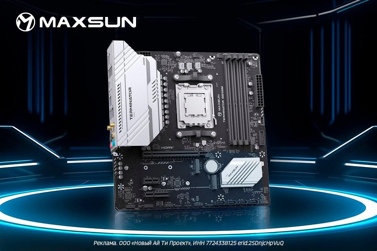 Материнская плата Maxsun MS-Terminator B850M Wi-Fi — компактная мощь Новинка на рынке, которая уже успела завоевать доверие многих пользователей. Материнская плата формата Micro-ATX поддерживает процессоры на разъеме AM5 и комплектуется чипсетом AMD B850, что делает ее отличным выбором для сборки высокопроизводительного компьютера. У нее четыре слота для оперативной памяти DDR5, которые позволяют использовать память с частотой от 4800 до 7600 МГц. Это значит, что вы сможете легко разогнать систему под свои нужды. Кроме того, Maxsun MS-Terminator B850M Wi-Fi предлагает два разъема M.2 для установки высокоскоростных накопителей, а также многочисленные слоты расширения – один PCI Express x16, один x4 и один x1. В общей сложности 6 портов USB 3.2 Gen1 и 6 USB 2.0 позволят подключить все необходимые периферийные устройства, а 4 порта SATA обеспечат надежное подключение жестких дисков.Что касается сетевых возможностей, плата поддерживает протокол 2.5G, что гарантирует быстрое соединение. А