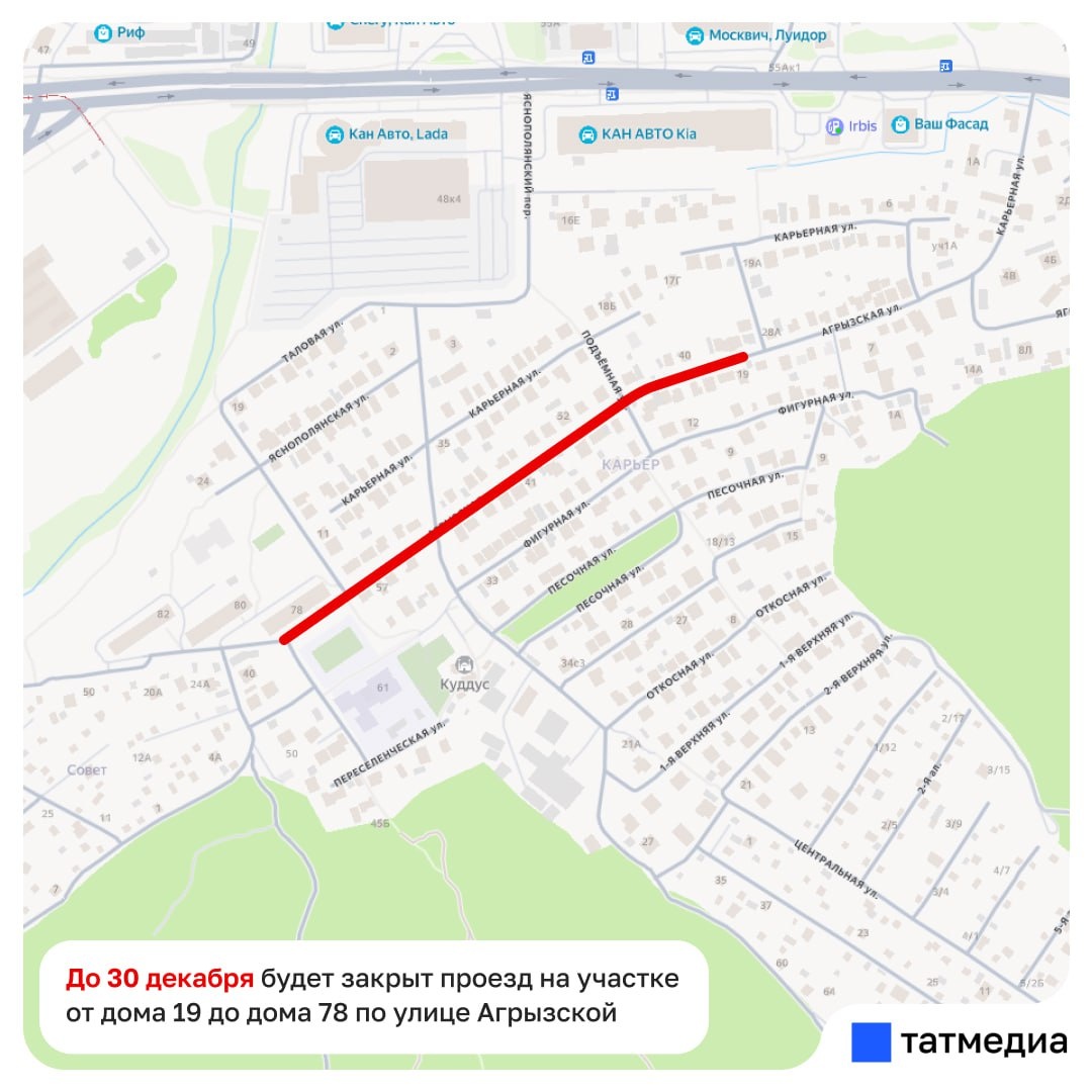 В ответ на пост 🚧🚗В Казани до конца года продлено ограничение движения по улице Поперечно-Таловой Причина – реконструкция водопровода. До 30 декабря проезд будет закрыт на участке от дома №19 до дома №78 по улице Агрызской. @tatmediaofficial | Все каналы Татмедиа ™️ 1-й новостной MAX-канал Татарстана - подпишитесь.