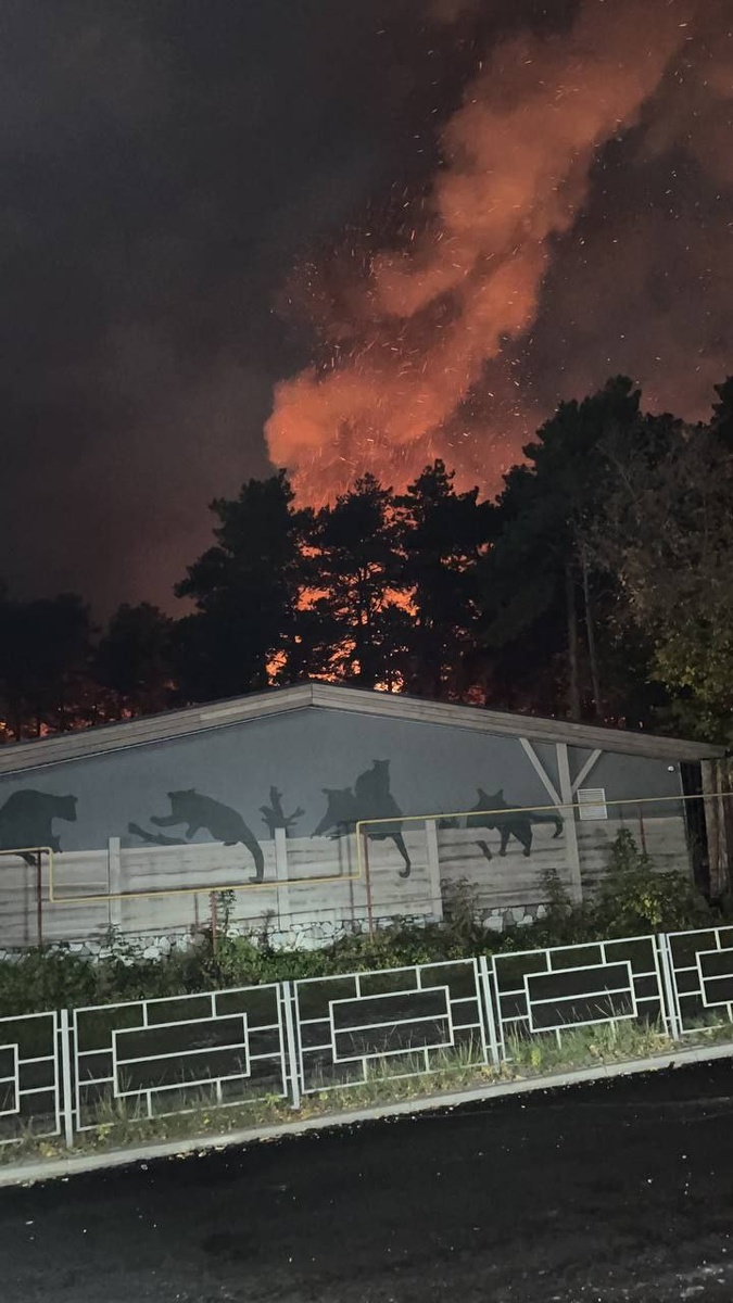 Открытый огонь виднеется на территории Новосибирского зоопарка.