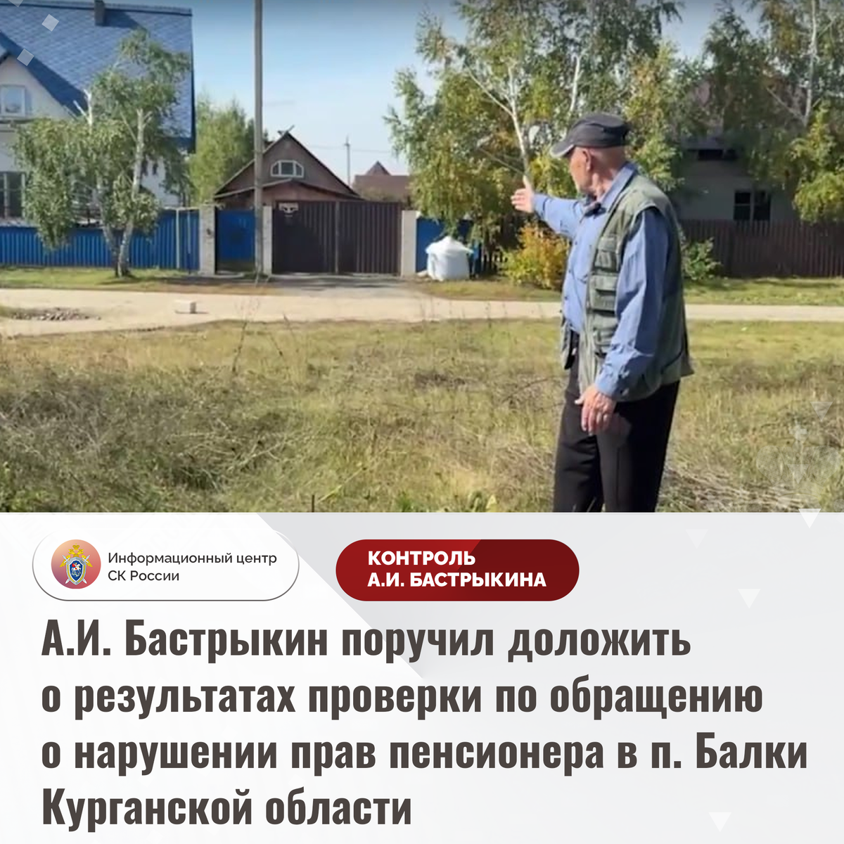 А.И. Бастрыкин поручил доложить о результатах проверки по обращению о нарушении прав пенсионера в п. Балки Курганской области