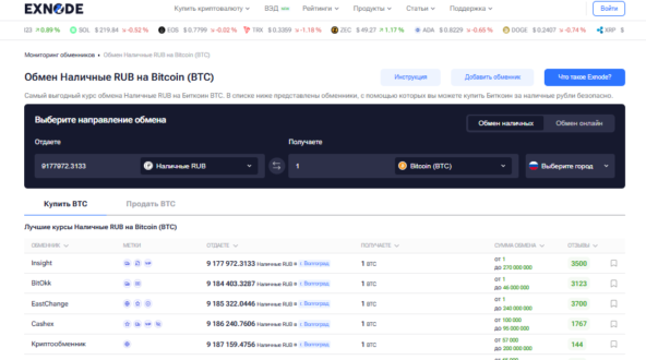Купить биткоин за рубли обменники — один из самых востребованных запросов у тех, кто хочет быстро и выгодно приобрести криптовалюту. Сегодня существует множество сервисов для обмена рублей на BTC, но не все они одинаково надежны и безопасны. Чтобы избежать ошибок и не потерять средства, опытные пользователи проверяют курсы и отзывы через мониторинг криптообменников Exnode.
