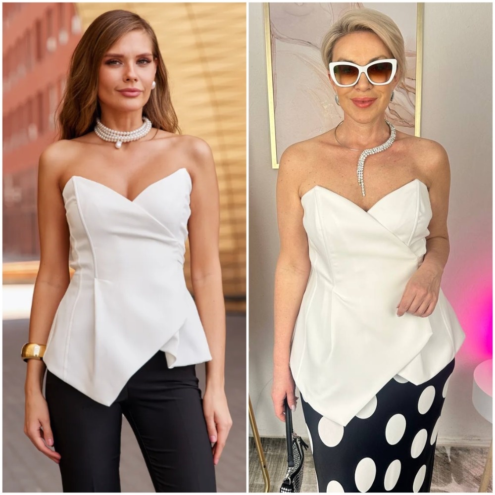 Здравствуйте, дорогие читатели! Меня зовут Ирина, я - стилист, и на этом канале показываю одежду и аксессуары с Wildberries такими, как они есть, то есть, из серии "ожидание/реальность". Мои параметры: рост 169 см, вес 67 кг, 94-74-100 ✅Основной канал: Стильно - не значит дорого! Ставьте лайк в поддержку канала, и давайте смотреть на мою сегодняшнюю покупку. Корсет с баской: элегантность в деталях Не так давно я решила приобрести на ВБ корсет, и мне настолько понравилась эта модель, что я взяла сразу белый и черный. Корсет из костюмной ткани с хлопком сочетает структурированность и комфорт. Глубокий вырез и асимметричный низ создают интересную геометрию, а баска добавляет мягкости силуэту. Завязки на талии позволяют регулировать степень прилегания, создавая разные варианты образа. Корсет держит форму, но не сковывает движений благодаря упругой ткани. Корсет довольно универсальный: Качество исполнения на уровне: ровные строчки, аккуратная обработка краев, надежные завязки. И белый, и че