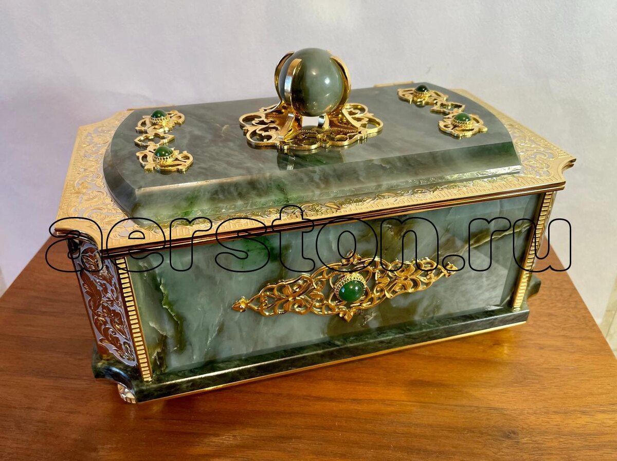 Шкатулка из нефрита — тайна Востока в каждом изгибе! Шкатулка из нефрита «Хранитель Времени» — где восточная легенда встречается с ювелирным мастерством. Каждый узор, каждый изгиб — это история, выточенная вручную. Не просто аксессуар, а наследие, которое вы передадите по наследству. ✨ Особенности: Материал: Натуральный нефрит, ювелирная латунь, золото. Габаритные размеры: 25 × 16 × 16 см. Вес: 6.5 кг. Техника исполнения: камнеобработка, ручная гравировка, инкрустация. Уникальность: Эксклюзивный дизайн, авторская ручная работа. Идеальный подарок для того, кто ценит: Вечные ценности и роскошь Восточную эстетику и философию Уникальные вещи с историей Хотите такой же или мечтаете об уникальном ларце? Так же Вы можете это изделие заказать в инкрустации, в золоте, серебре, драгоценными камнями, по Вашим эскизам, с дарственной надписью. Время изготовления работ от 1 недели до 2-х месяцев. ✔️Подпишись на наш канал ✍️ ✔️Жми на палец вверх! 👍 🔸 Интернет магазин 📱 Телеграм канал 🔹 Д