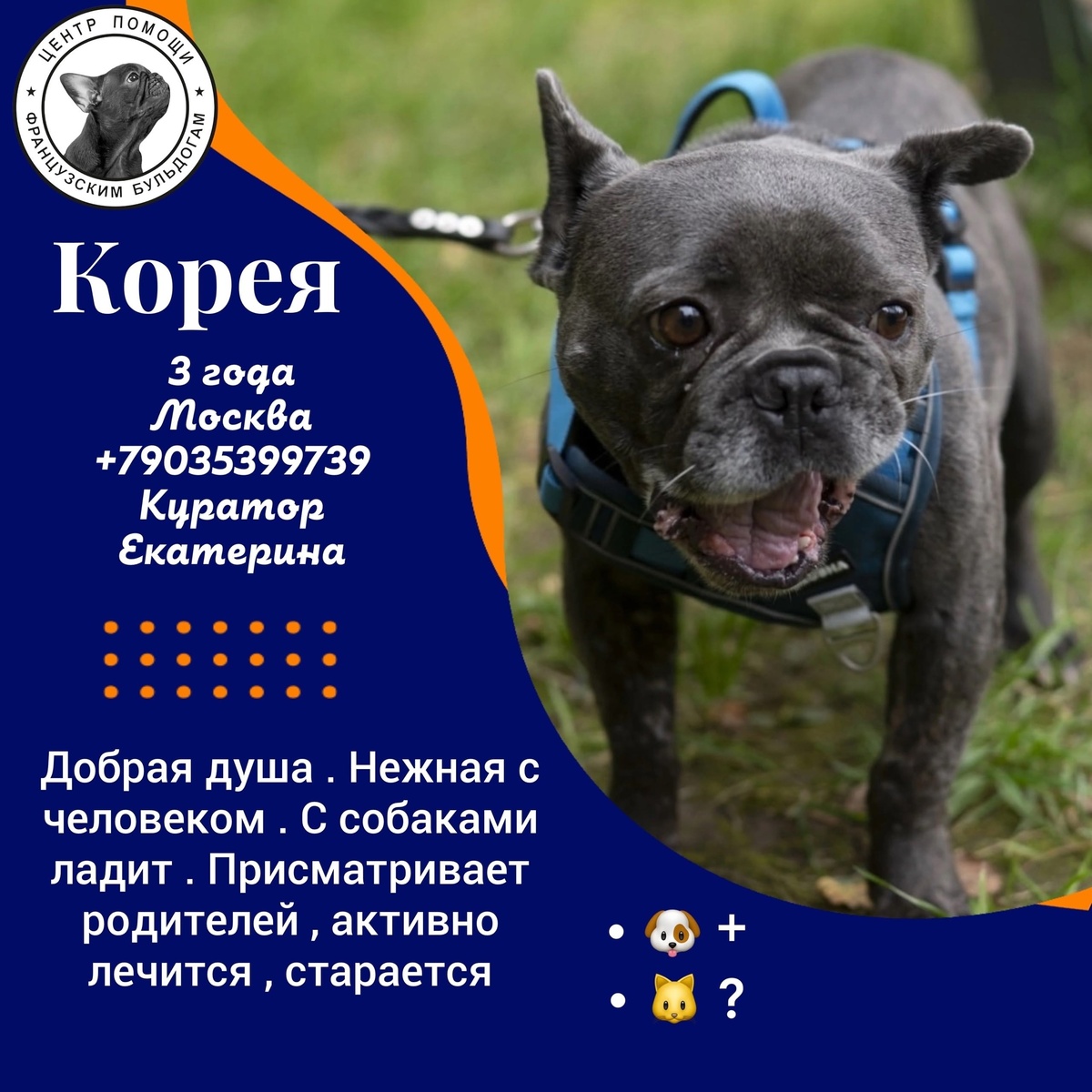 🔴🔴🔴🔴🔴 Бульдожка срочно ищет дом!!!🏡 #Корея@frenchbull_help https://vk.com/topic-144285450_54787894 Друзья, в субботу закрывается зоогостиница и малышке некуда идти!!! Добрая, ласковая девочка. Без проблем по здоровью. Хочет быть единственной. Ревностно относится к другим животным из-за внимания человека. Недолюблена, недоласкана. Также рассмотрим передержку до поиска семьи. Корея находится в ближнем Подмосковье. ✏️Связывайтесь САМОСТОЯТЕЛЬНО с куратором ➡️ ☎️ Екатерина +7 903 539-97-39 WhatsApp, MAX, сотовая связь