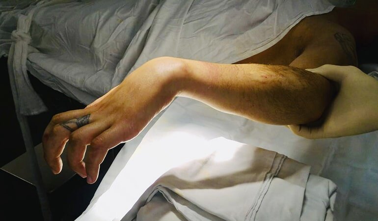 - IV степень. Контрактура более 135°. Фактически пальцы согнуты в кулак, и разогнуть их не получается.