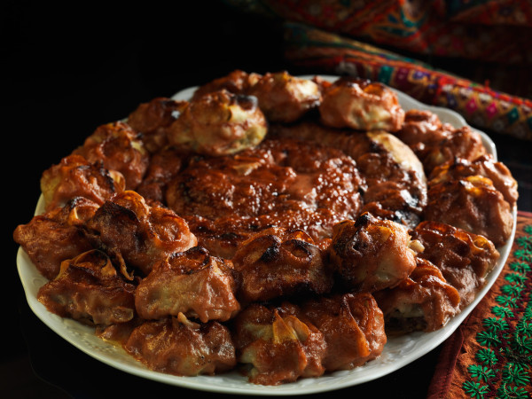 А мы сегодня даже и не на пару будем готовить, а как обычно - в печи. Да-да, мы уложим манты и ханун в смазанные маслом формы для запекания и поставим их в печь (духовку 220С). Когда манты начнут румяниться, а фарш внутри них зашкворчит... Э, нет! Погодите! Вернемся на час назад. Прежде чем лепить манты пожарьте лук и несколько покрошенных зубчиков чеснока. Достаньте из морозилки куриный бульон и добавьте в сковороду с луком. Нет бульона? Добавьте обычные сливки! Или добавьте и то, и другое. Или не морочьте мне голову и обратитесь к А.
