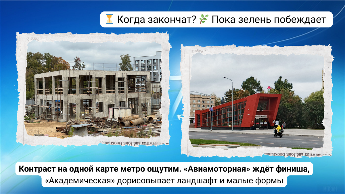 официальные отчеты. Давайте вместе разберемся, что же на самом деле происходит с нашей Москвой. Поехали? Во-первых, хотим сообщить, что у 🚇 станции «Авиамоторная» 💍 Большой Кольцевой линии уже который год продолжается второй этап восстановления прилегающей территории после строительства. Очень медленными темпами ведется восстановление трамвайного кольца и проезда вдоль путепровода. Напомним, что с момента открытия станции прошло 5 с половиной лет. Печально наблюдать на