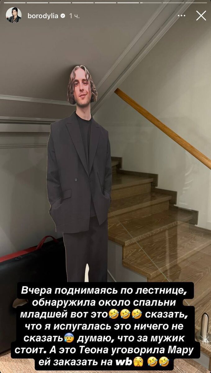 Дочь Ксении Бородиной шокировала маму картонным мужиком. Теона молодец, постепенно готовит маму к появлению будущего бойфренда.