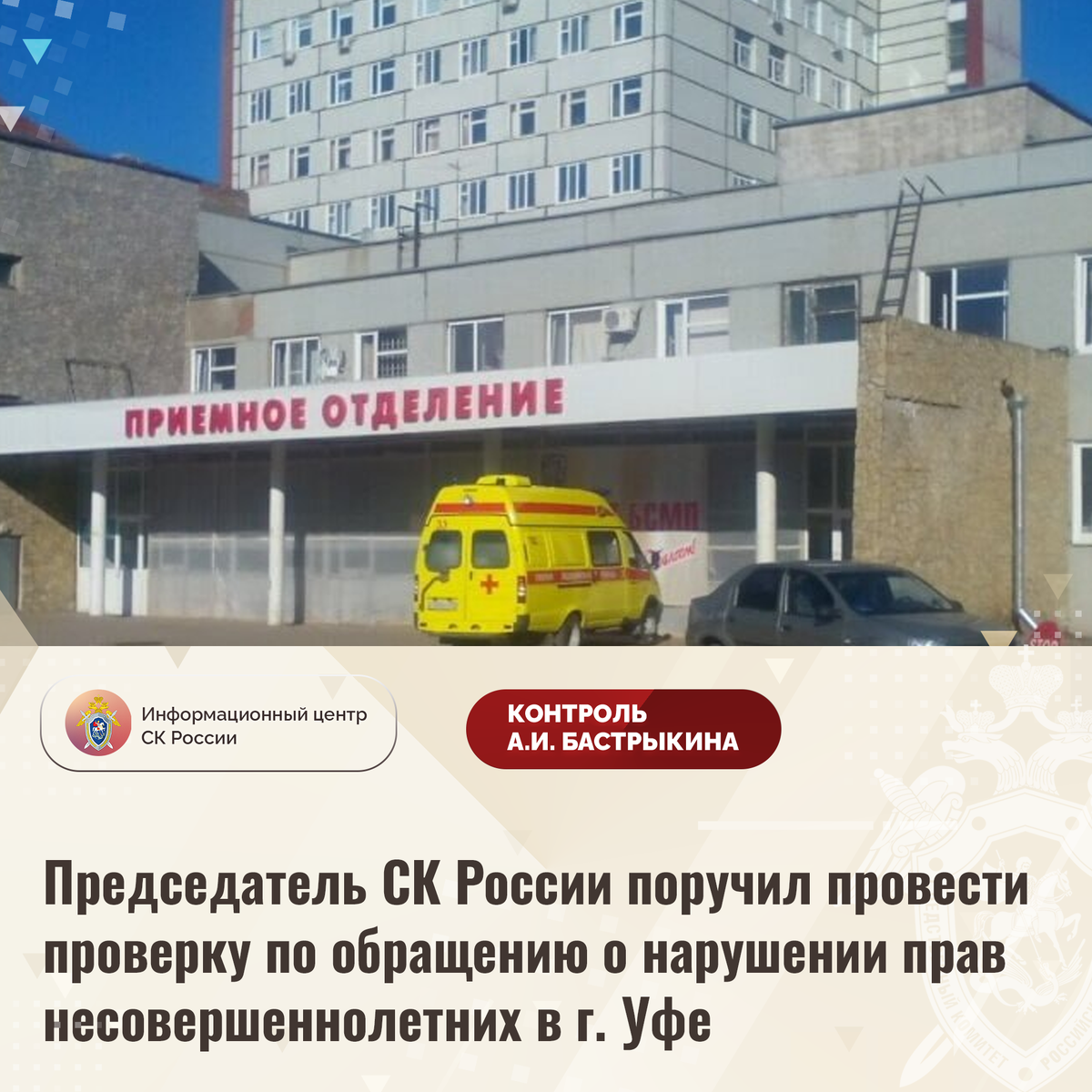 Председатель СК России поручил провести проверку по обращению о нарушении прав несовершеннолетних в г. Уфе В социальной сети размещено обращение жителей города Уфы по вопросу нарушения прав несовершеннолетних на квалифицированную медицинскую помощь. В населенном пункте планируется ликвидация четырех детских стационарных отделений клинической больницы скорой медицинской помощи. В результате граждане будут вынуждены доставлять несовершеннолетних в учреждение, расположенное на значительном расстоянии от их места жительства. Многочисленные обращения в различные инстанции результатов не принесли. Председатель Следственного комитета Российской Федерации Александр Иванович Бастрыкин поручил руководителю СУ СК России по Республике Башкортостан Владимиру Владимировичу Архангельскому провести процессуальную проверку и доложить о ее ходе и результатах. Исполнение поручения поставлено на контроль в центральном аппарате ведомства. #СледственныйКомитет #СКРоссии #СКР #ИЦСКР #ИнформационныйЦентр #Ал