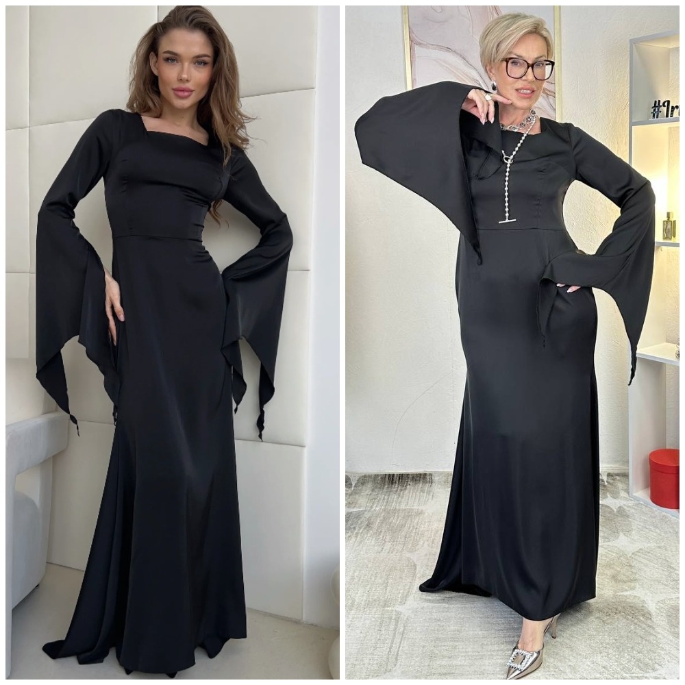 Здравствуйте, дорогие читатели! Меня зовут Ирина, я - стилист, и на этом канале показываю одежду и аксессуары с Wildberries такими, как они есть, то есть, из серии "ожидание/реальность". Мои параметры: рост 169 см, вес 67 кг, 94-74-100 ✅Основной канал: Стильно - не значит дорого! Ставьте лайк в поддержку канала, и давайте смотреть на мою сегодняшнюю покупку. Черное платье: готическая элегантность Это платье в черном цвете — воплощение сдержанной драматичности. Приталенный крой из эластичного трикотажа мягко облегает фигуру, создавая строгий силуэт. Квадратное декольте и длинные рукава добавляют образу архитектурной четкости. Плотная ткань с матовой поверхностью благородно поглощает свет, создавая эффект глубины. Молния сзади обеспечивает удобство надевания, сохраняя чистоту линий переда. Длина макси (для моего роста 169 см — в пол) придает модели вечерний характер. Платье выглядит одновременно строго и чувственно. Это идеальный выбор для тех, кто ищет эффектное вечернее платье с характ